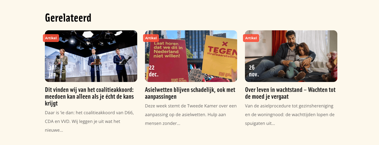 Naast het beantwoorden van vragen gebruikt VluchtelingenWerk vragen.ai ook om gerichte aanbevelingen onder pagina’s te tonen. Waar dit eerder handmatig werd ingericht, analyseert het model nu de inhoud en betekenis van een pagina en koppelt daar automatisch relevante content aan. Deze aanbevelingen worden in realtime gegenereerd en kunnen verschillen op basis van de context van de pagina. Tegelijk blijft er ruimte voor menselijke controle. Met een human-in-the-loop kan de redactie aanbevelingen handmatig vastzetten wanneer dat nodig is. Op die manier blijft de balans tussen slimme automatisering en inhoudelijke regie behouden.